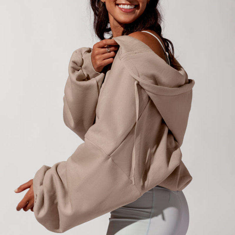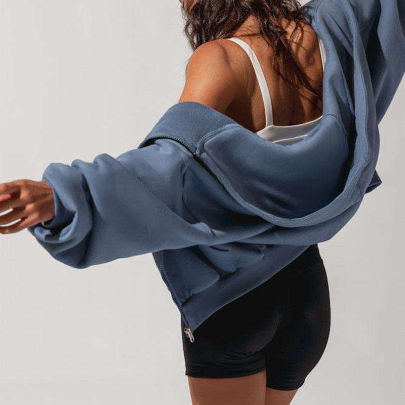 เสื้อแจ็คเก็ตมีฮู้ดซิปเต็มสำหรับผู้หญิงเสื้อออกกำลังกายแบบลำลองมีกระเป๋าสำหรับเล่นกีฬาวิ่งโยคะ