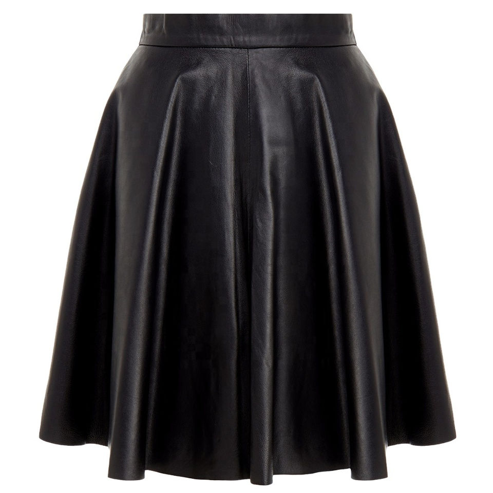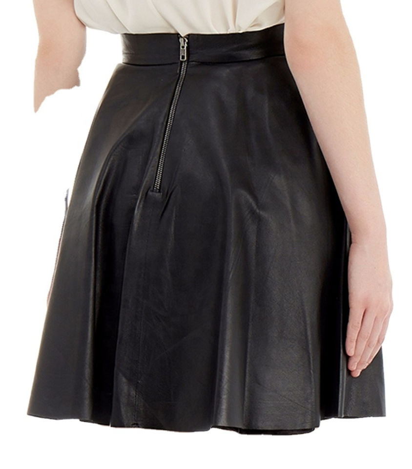 กระโปรงหนังยาวหนังแท้สำหรับผู้หญิงกระโปรงหนังกลับสีดำตามสั่งใหม่