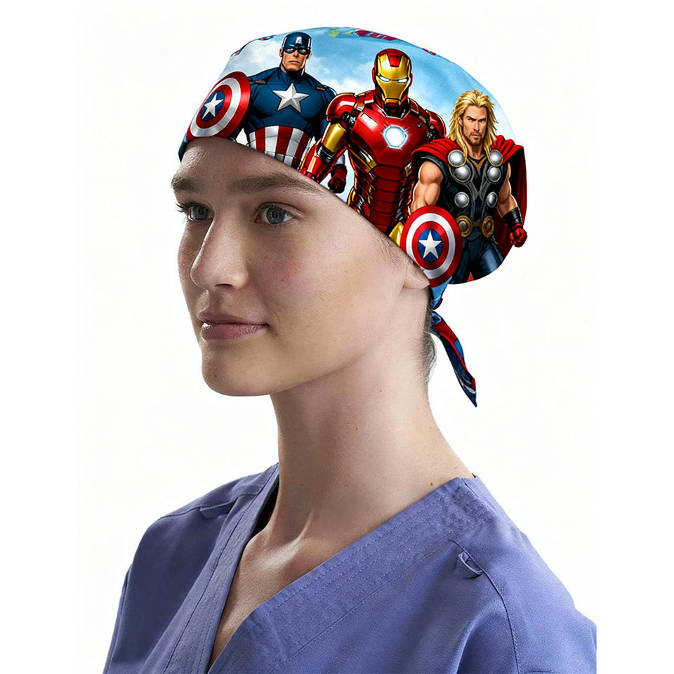 หมวกสครับผมยาวของผู้หญิงมีกระดุมแบบเย็บปักลายโลโก้ตามสั่งหมวกทรงหางม้าพยาบาลมีสายผ้าซาติน