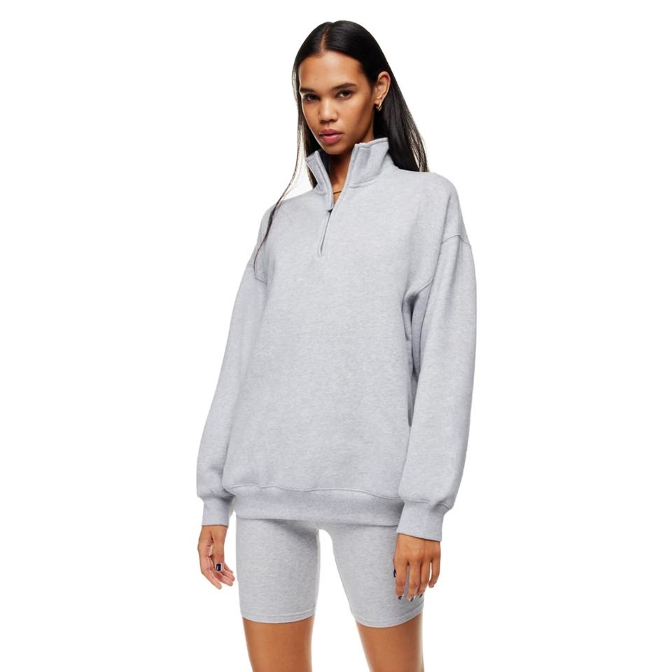 เสื้อกันหนาวแขนยาวผู้หญิง,เสื้อฮู้ดคอตตอน100% แบบสวมหัวรองรับซิปสูง