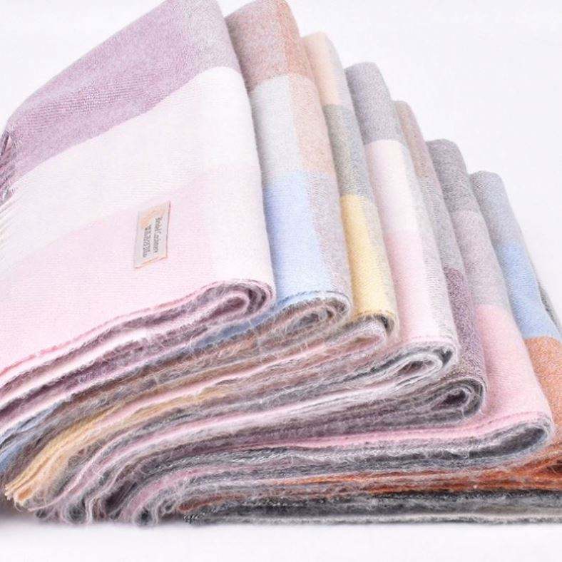 Wholesale Women Long Square Polyester Scarf Tassel Fashionable Checked Women Scarves