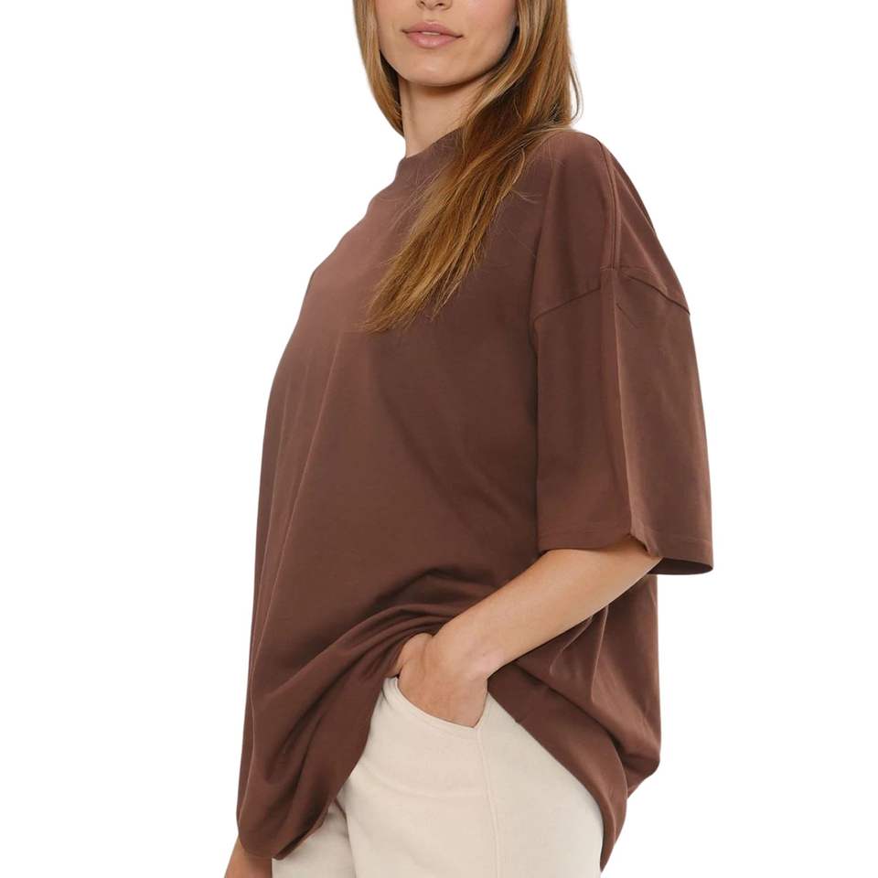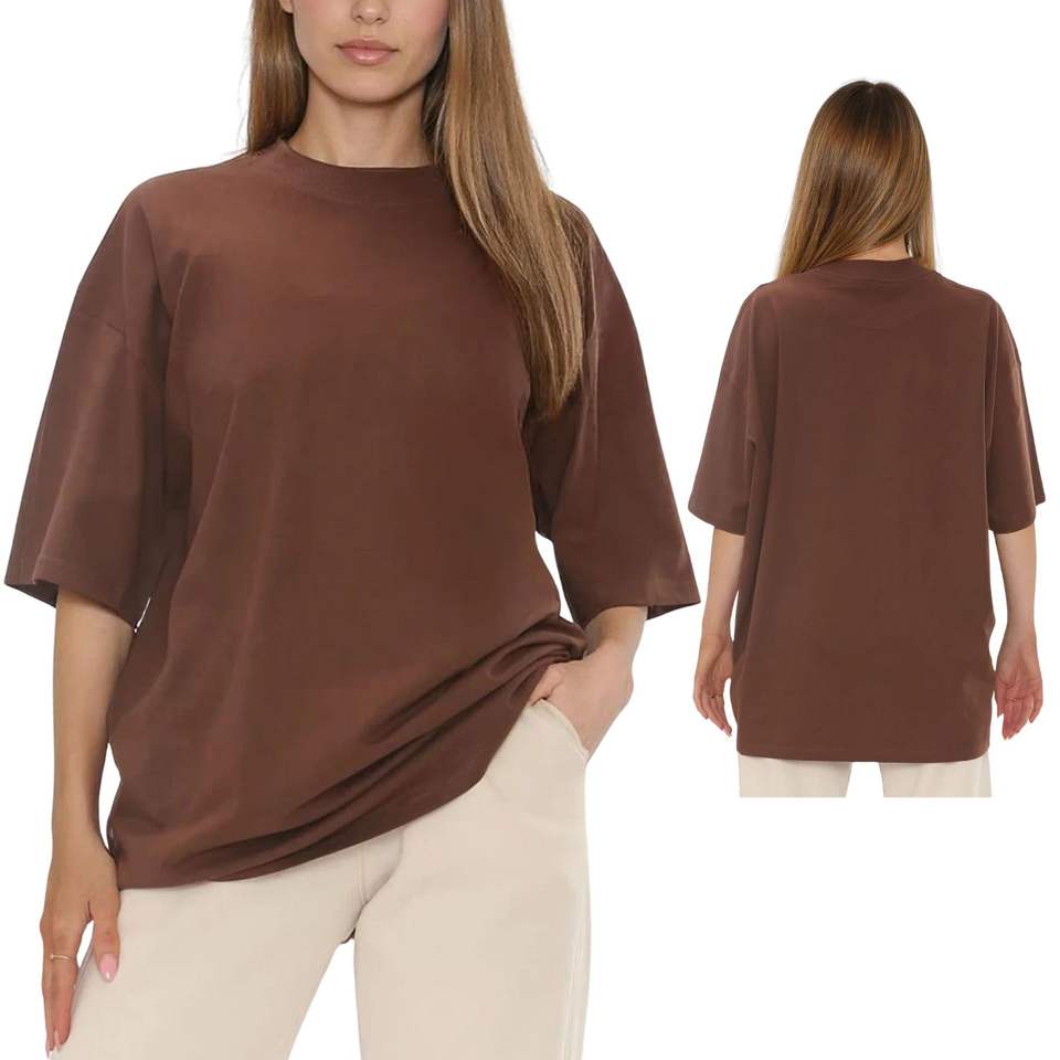 เสื้อยืดโอเวอร์ไซส์ผู้หญิงขายส่ง สีพื้น เรียบง่าย สไตล์ลำลอง เสื้อตัวยาวสำหรับฤดูร้อน รับผลิตเสื้อยืดผู้หญิงแบบ OEM ทันสมัย