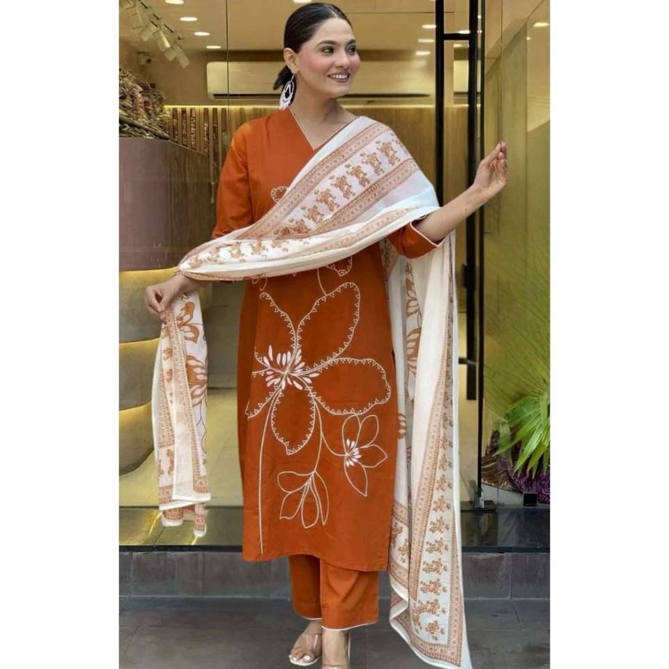 ชุดสูทผ้าเรยอนสลับสำหรับผู้หญิง ขายส่ง พร้อมผ้าคลุมไหล่ปักลายและพิมพ์ลาย ชุดสามชิ้นสำหรับโอกาสพิเศษ คุณภาพพรีเมียม