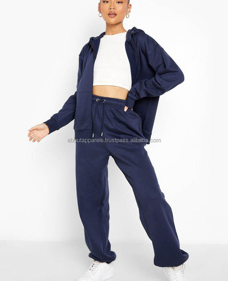 เซ็ตเสื้อสเวตเตอร์คอกลมผ้าขนแกะสำหรับวิ่งของผู้หญิงชุดเสื้อมีฮู้ดถักสีพื้นลำลองสำหรับผู้หญิงขายส่ง