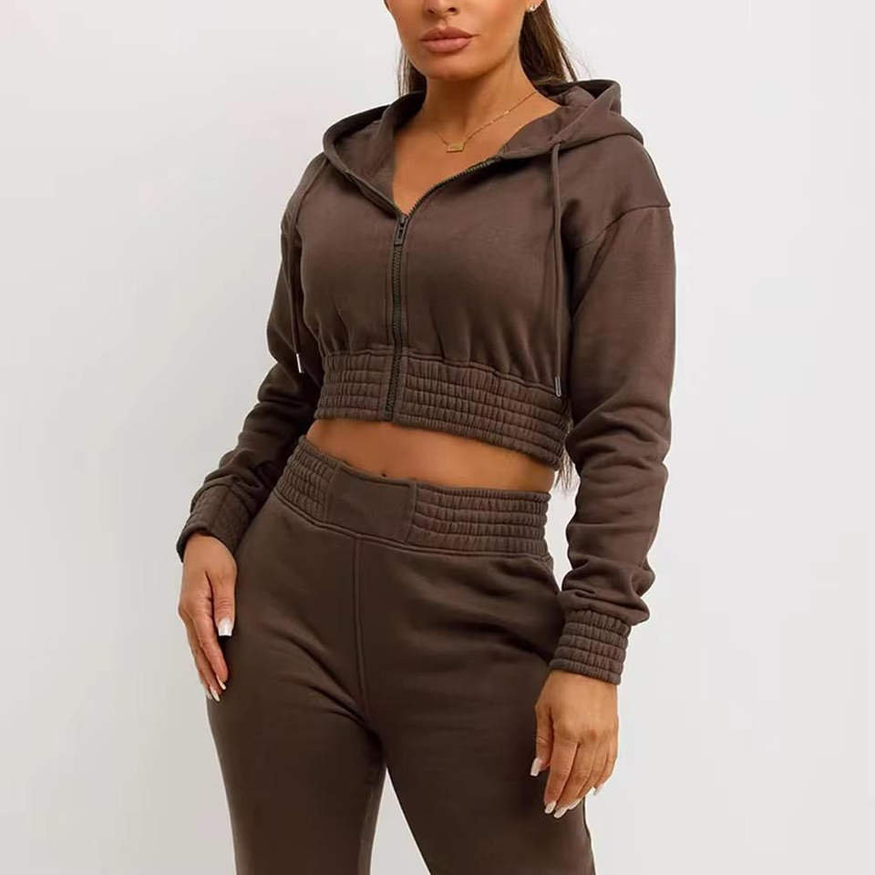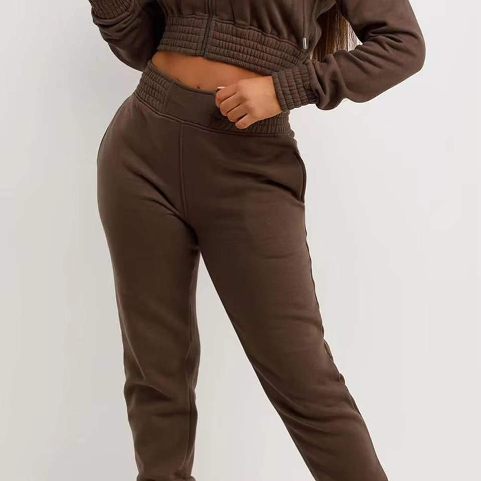 ชุดเซ็ทลำลองสปอร์ตแวร์ผู้หญิงสำหรับฤดูหนาว แบบขายส่ง ลายจุด ฮิปฮอป เสื้อครอปท็อป กางเกงขายาว ผ้าฟอกสี รับสั่งทำ