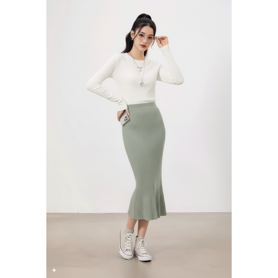 กระโปรงทรงเอเอวสูงผ้าขนสัตว์ถักลายริบสำหรับผู้หญิง ขายส่ง เนื้อนุ่ม ยืดหยุ่น ระบายอากาศได้ดี กันยับ เป็นมิตรกับสิ่งแวดล้อม แฟชั่น
