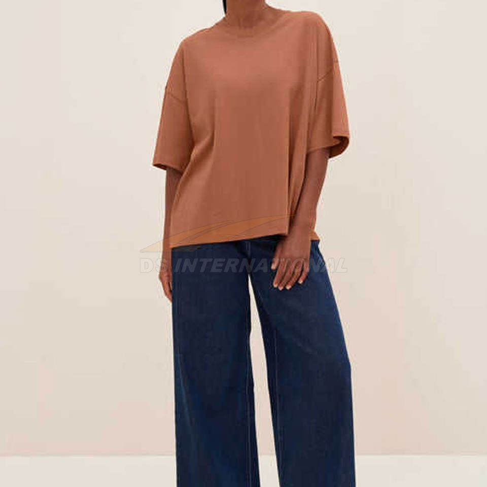 เสื้อยืดสตรีผ้าฝ้ายบ็อกซี่100% คอกลมหลากสีพิมพ์แบรนด์จำนวนมากโลโก้ OEM ตามสั่งนุ่มระบายอากาศ