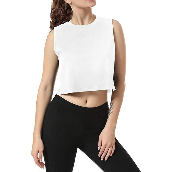 เสื้อครอปผ้าฝ้าย100% สำหรับผู้หญิงเสื้อครอปผ้ายืดเสื้อครอปแขนกุดตัวสั้นดีไซน์ล่าสุด