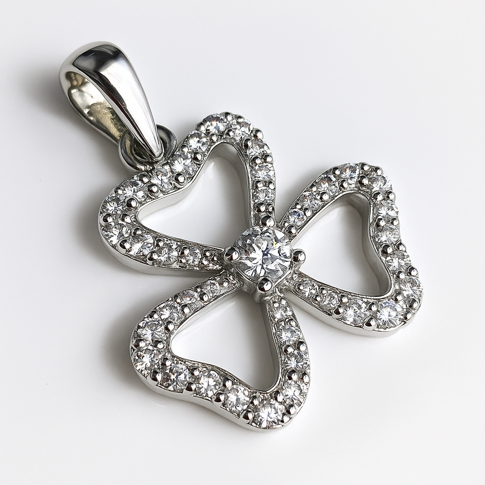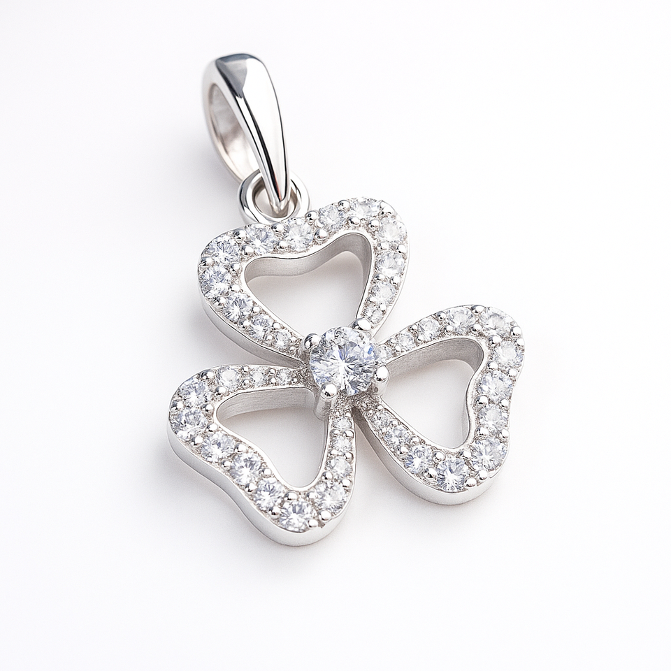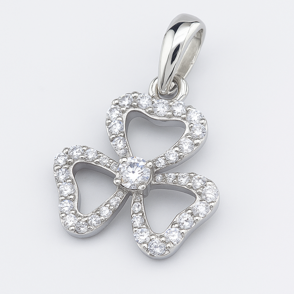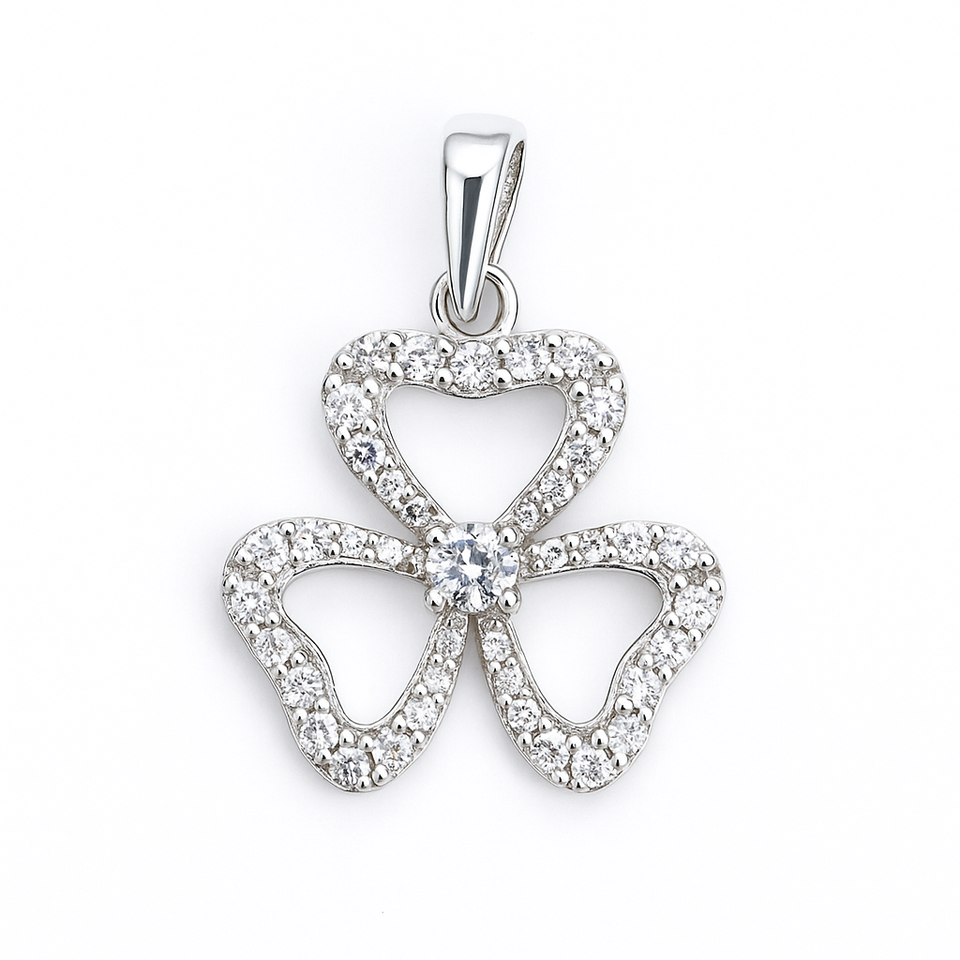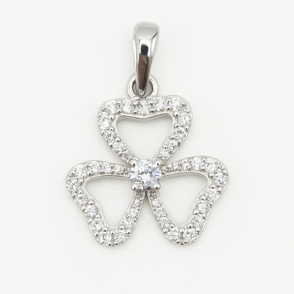 จี้รูปดอกไม้ 3 กลีบประดับเพชร CZ สำหรับผู้หญิง ขายส่ง ทำจากเงินแท้ชุบโรเดียม ดีไซน์เรียบง่าย เหมาะสำหรับงานแต่งงาน น้ำหนัก 2.25 กรัม รูปทรงกลม