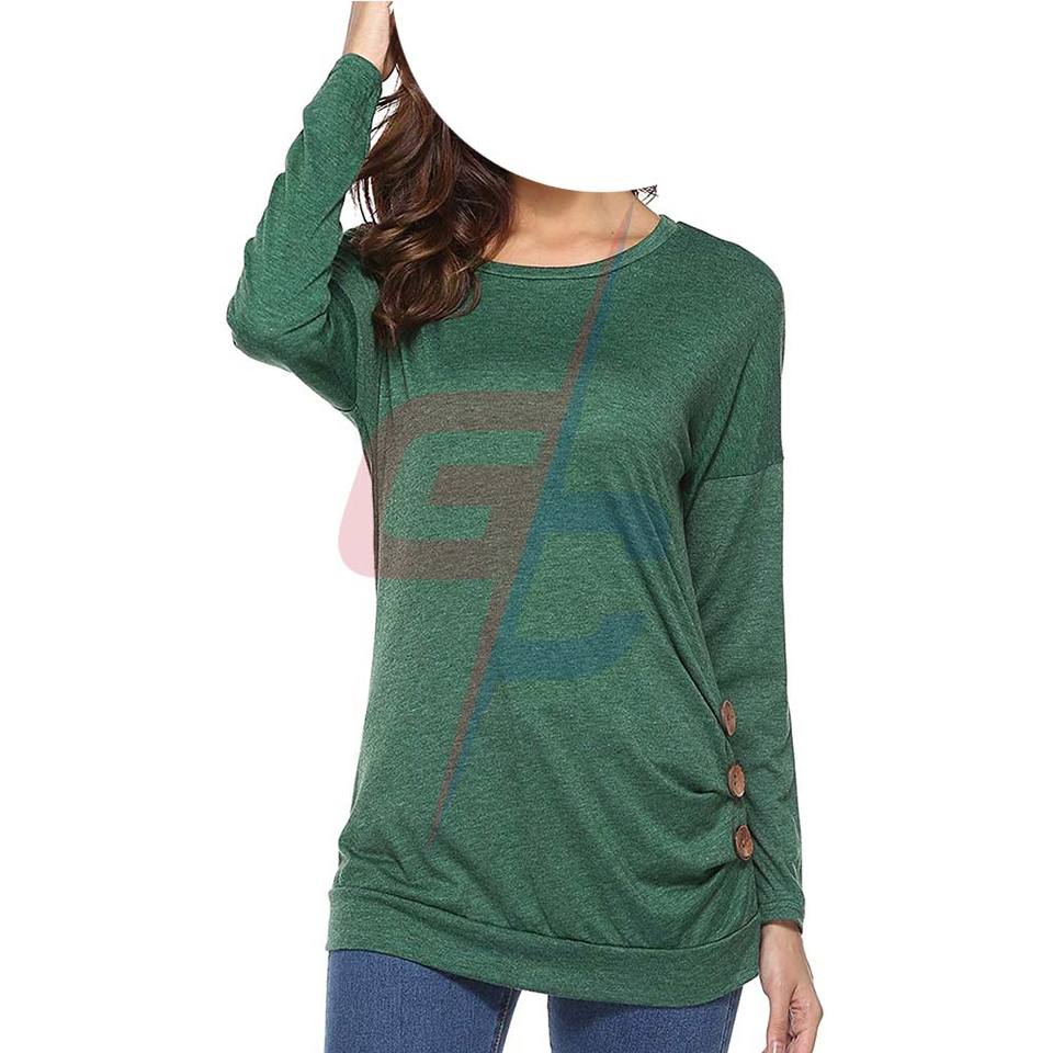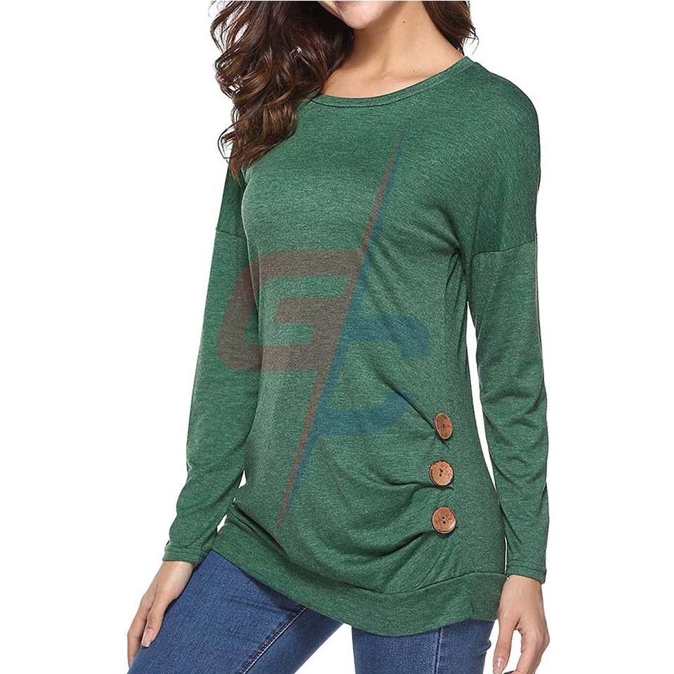 เสื้อเบลาส์ลำลองสำหรับผู้หญิงเสื้อคอกลมแขนสั้นทรงหลวมติดกระดุมสำหรับตกแต่ง