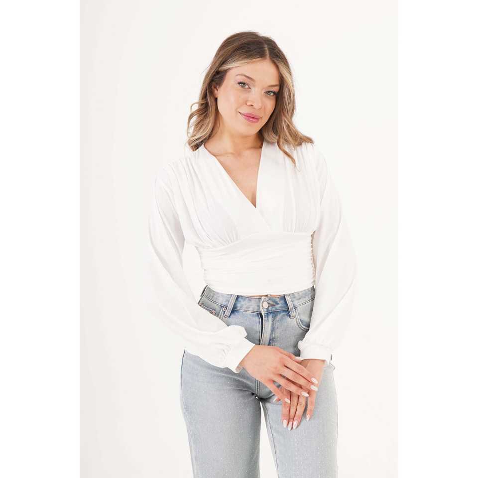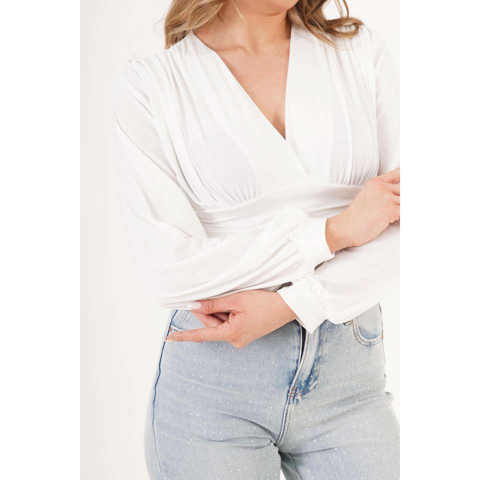 เสื้อผู้หญิงคอวีลายดอกไม้ ผ้าถักทรงสวย แต่งระบายที่คอ ไซส์ XL สำหรับงานออฟฟิศและปาร์ตี้ ขายส่ง
