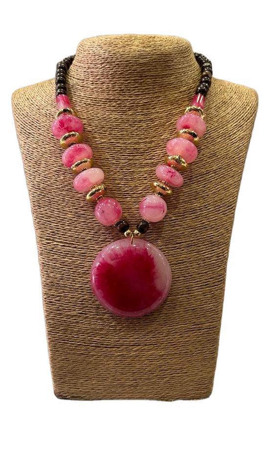 สร้อยคอแฟชั่นผู้หญิงแบบคลาสสิกขายส่ง จี้เรซิ่นขนาดใหญ่ประดับด้วยลูกปัดปะการังสำหรับใส่ทุกวัน