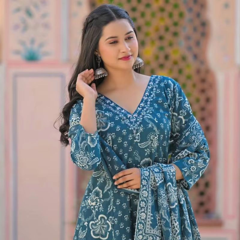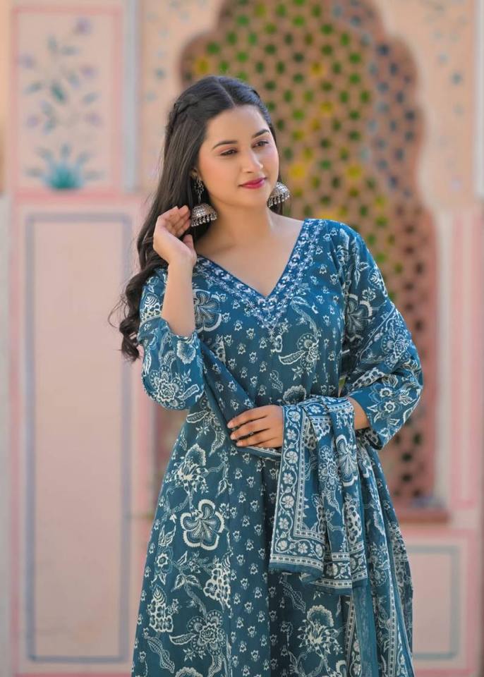 ชุดกระโปรงยาวผ้าฝ้ายระบายได้ดีสำหรับผู้หญิงผ้าคอตตอนพร้อมก้นและ dupatta ดีไซน์หรูหราระบายอากาศได้ดีเหมาะสำหรับใส่สบายๆ
