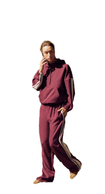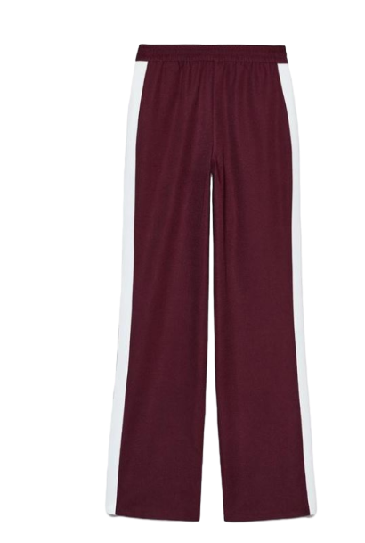 กางเกงขายาวสีแดงเลือดหมูลายทาง