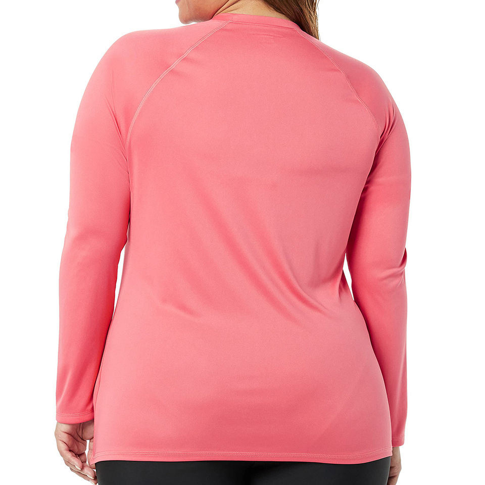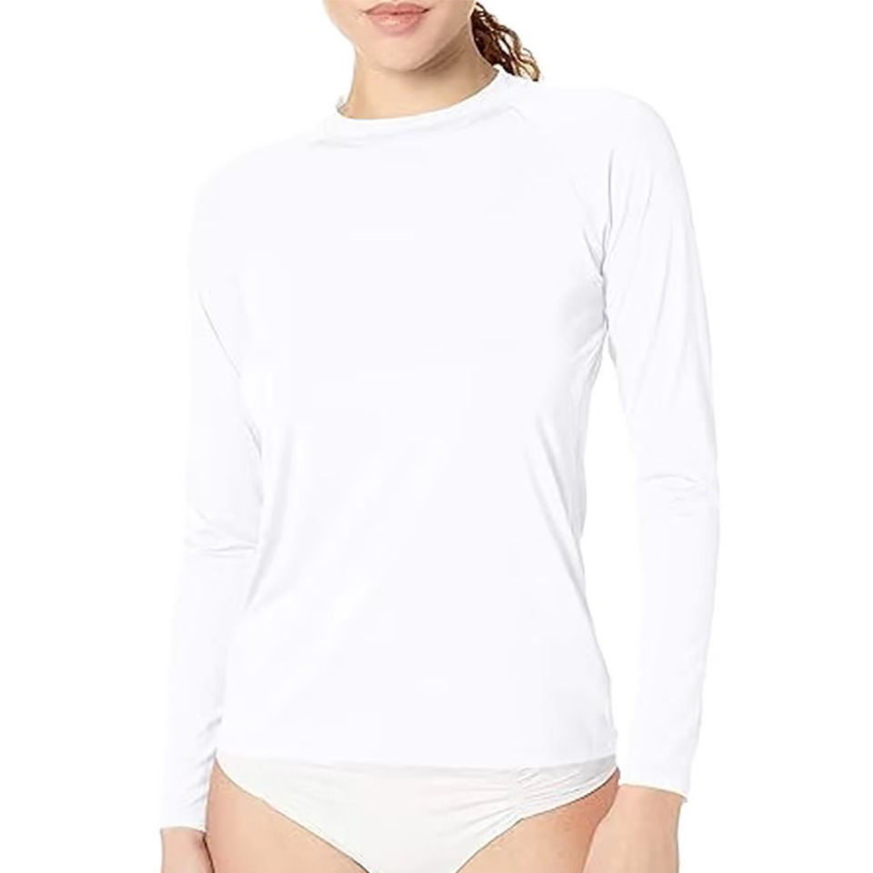 เสื้อยืดแขนยาวคอกลมทรงเข้ารูปสำหรับผู้หญิง ขายส่ง ป้องกันแสงแดด UPF50+ ผลิตจากผ้าสแปนเด็กซ์/โพลีเอสเตอร์ เป็นมิตรกับสิ่งแวดล้อม เหมาะสำหรับกิจกรรมกลางแจ้ง