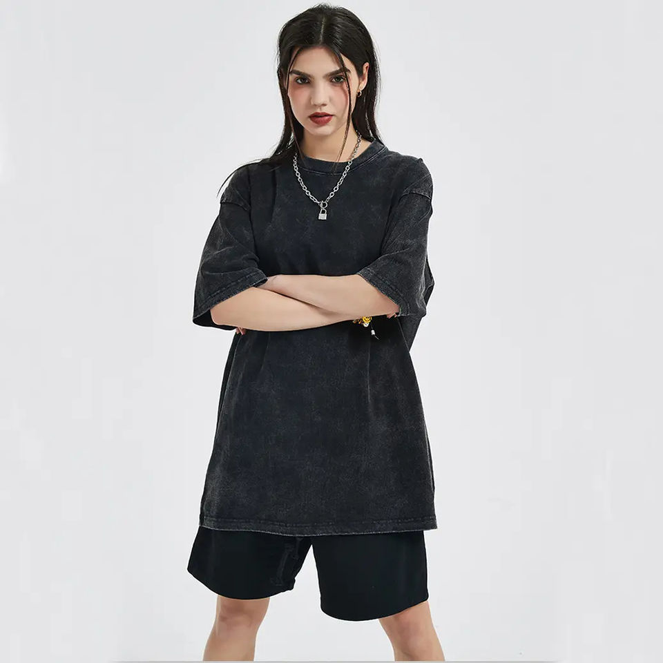 เสื้อยืดผู้หญิงขายส่ง แบบสั่งทำพิเศษ ทรงสลิมฟิต สำหรับฤดูร้อน เป็นมิตรกับสิ่งแวดล้อม แห้งเร็ว ผ้าฝ้าย ทรงไหล่ตก สไตล์วินเทจ ลุคทำเก่า