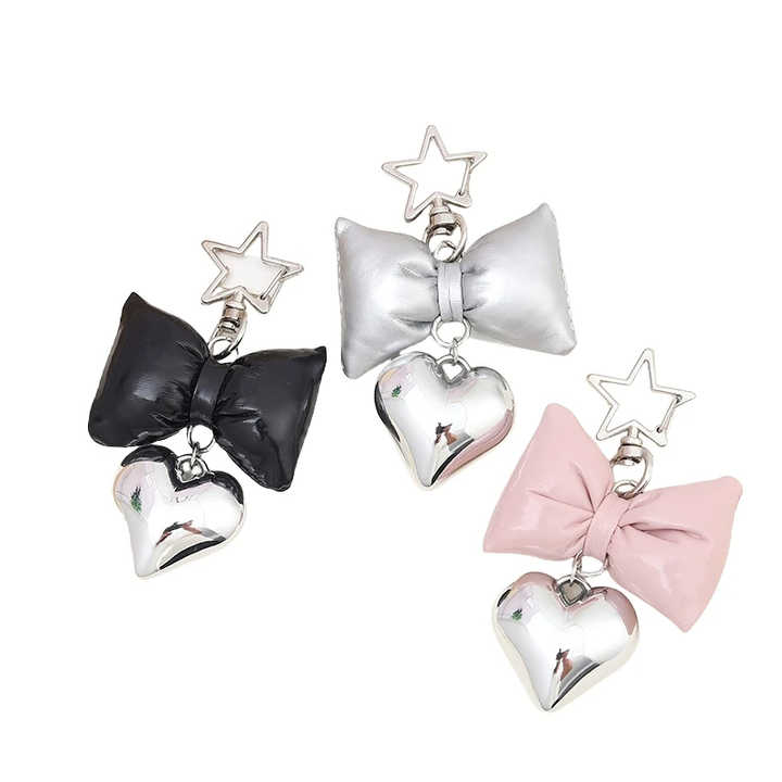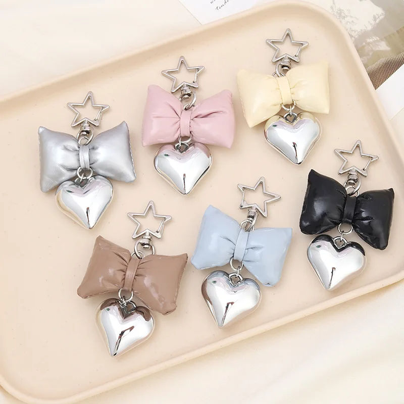 พวงกุญแจหนังรูปหัวใจผูกโบว์น่ารักสำหรับผู้หญิง ขายส่ง ใช้เป็นจี้โทรศัพท์หรือพวงกุญแจกระเป๋า