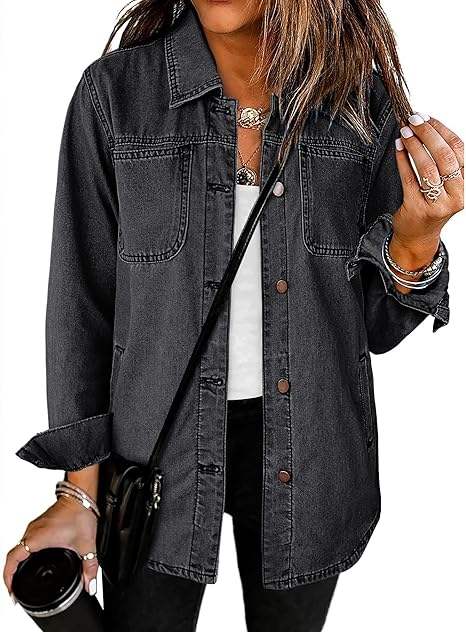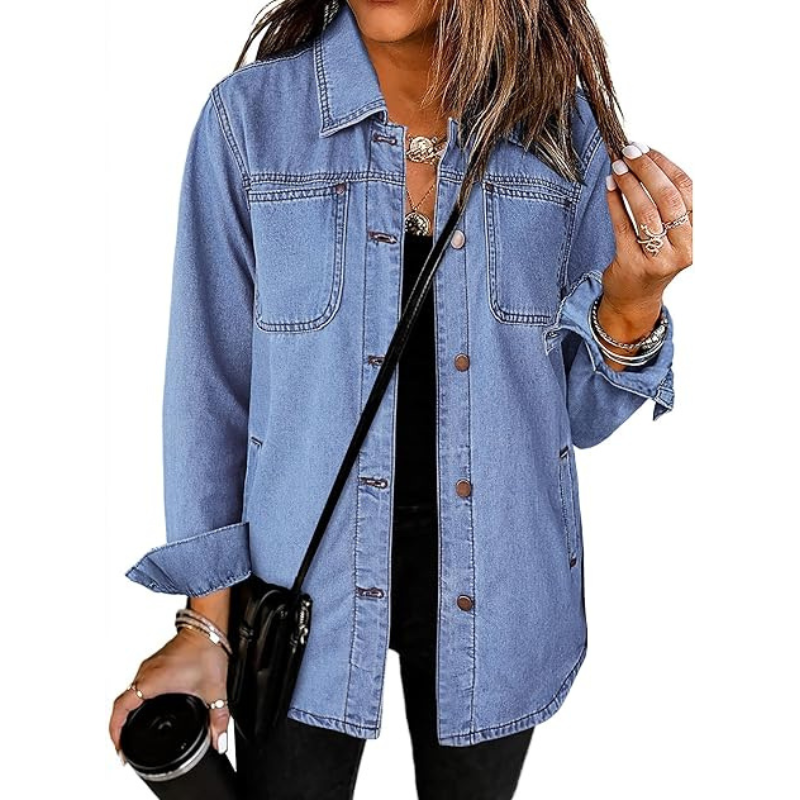 แจ็คเก็ตยีนส์วินเทจผู้หญิงขายส่ง - แจ็คเก็ตยีนส์แขนยาวติดกระดุมแบบรักษ์โลก มีกระเป๋า สไตล์ตะวันตก ลำลอง ใส่ทำงานได้ ฤดูใบไม้ร่วง ฤดูหนาว