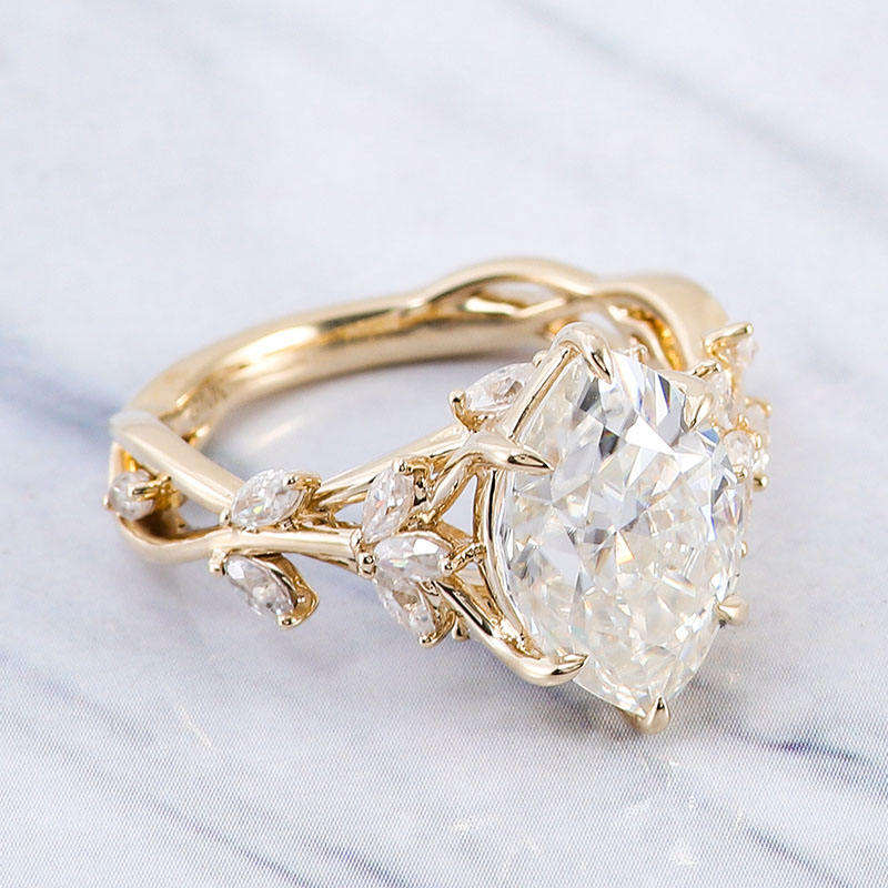 แหวนแต่งงานเพชรแล็บทรงมาร์ควิสทองคำแท้ 10K สำหรับผู้หญิง ดีไซน์เนอร์ ขายส่ง พร้อมแหวนประดับเพชรทรงดอกไม้