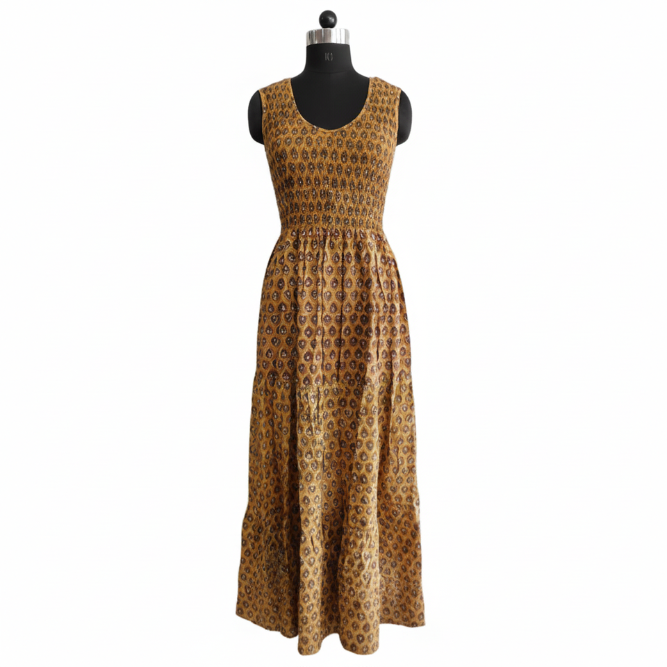 เดรสยาวถึงพื้นยาวผ้าฝ้ายพิมพ์ลายสำหรับผู้หญิงเดรสผ้าทอที่เป็นมิตรต่อสิ่งแวดล้อม