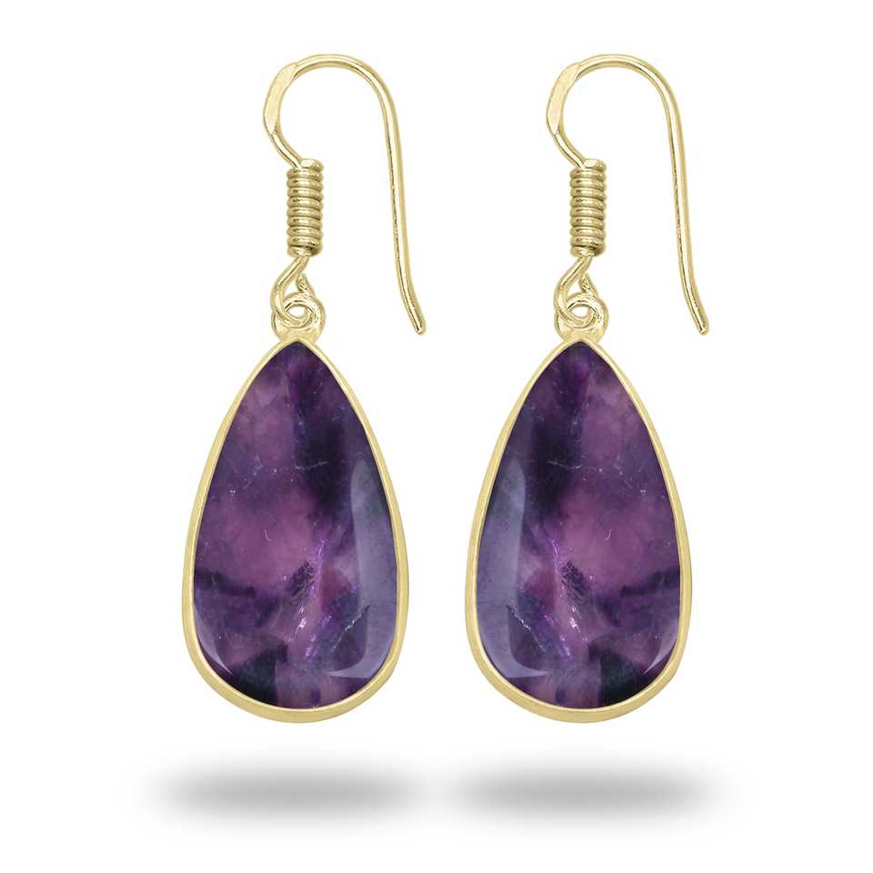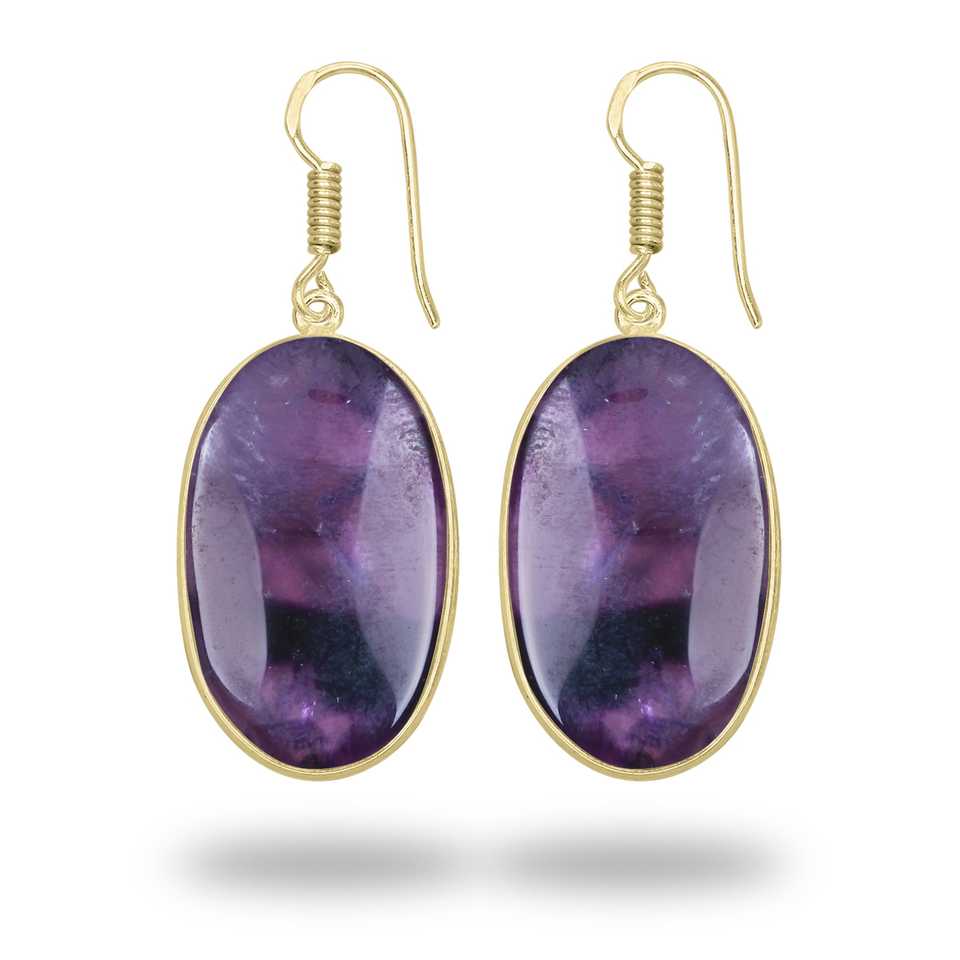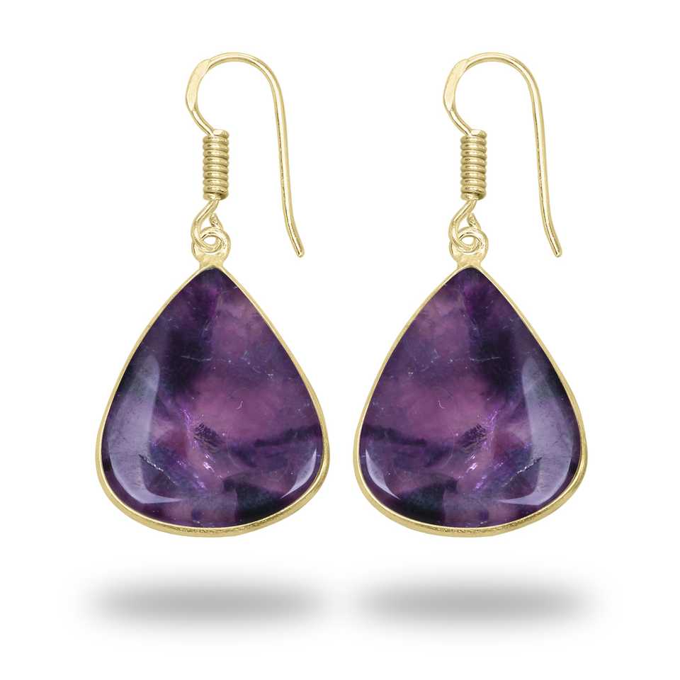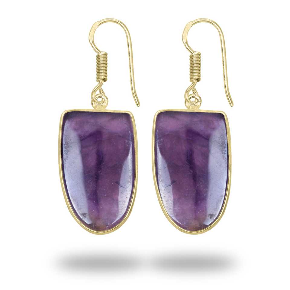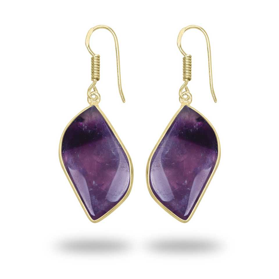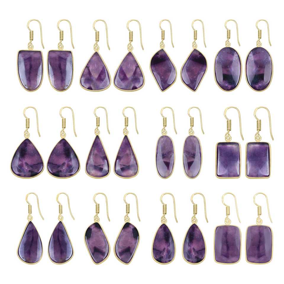ต่างหูผู้หญิงขายส่ง ต่างหูพลอยอะมีทิสต์ หินประจำเดือนเกิด ของขวัญคริสต์มาส เครื่องประดับทำมือ ต่างหูทองเหลืองชุบเงิน