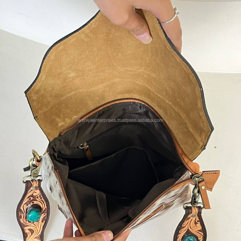 Wholesale Women's Elegant Design Hand Tooled Cow Leather Messenger Shoulder Bag Western Handbags Large Capacity Crossbody Purse