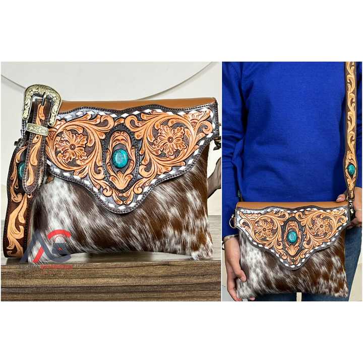 Product name:Hand Tooled Cowhide Leather Fringe Crossbody Bag
