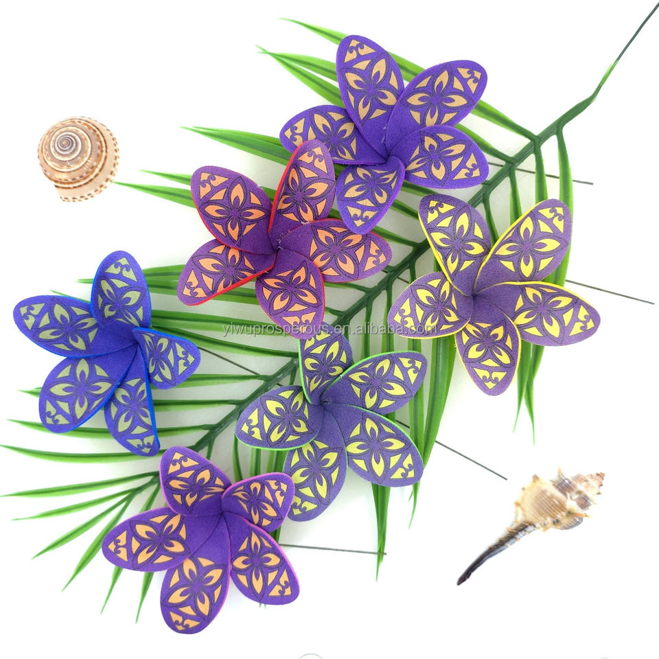 คลิปผมโฟมสำหรับผู้หญิงแบบลำลองสำหรับงานปาร์ตี้ริมเกาะชายหาดเขตร้อนกิ๊บติดผมทรงชบามีหูรอยสักดอกลีลาวดีดอกไม้ฮาวาย