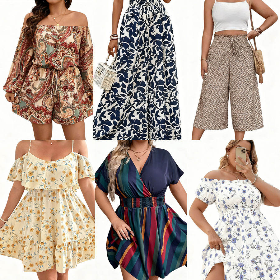 Skirts, short-sleeved tops, coats, halter tops, etc.
