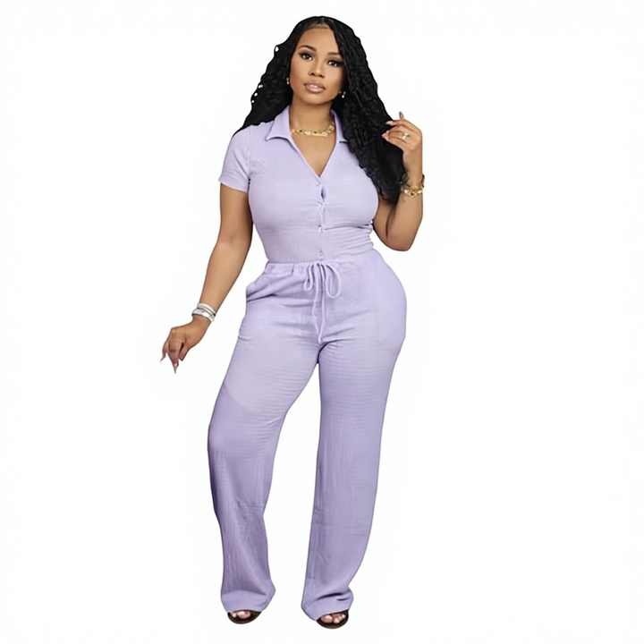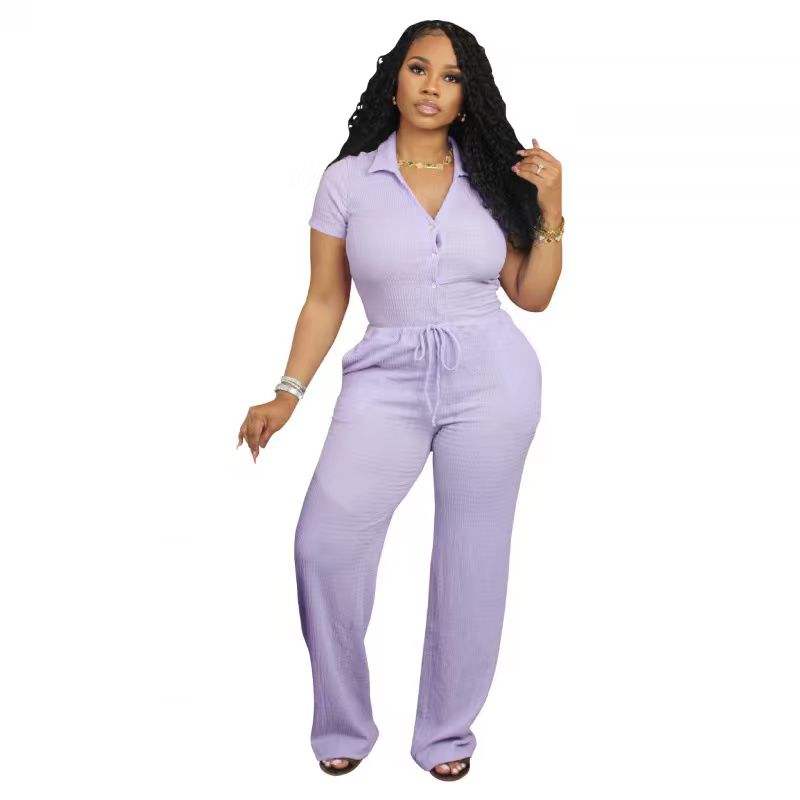 ชุดเซ็ตสองชิ้นสำหรับผู้หญิงขายส่ง เสื้อเชิ้ตแขนกว้างลำลองผ้าโพลีเอสเตอร์ระบายอากาศดี เหมาะสำหรับฤดูร้อน/ฤดูใบไม้ผลิ/ฤดูใบไม้ร่วง