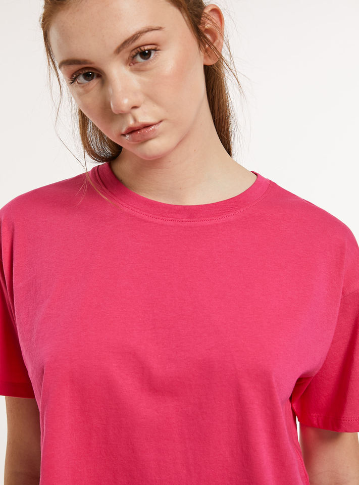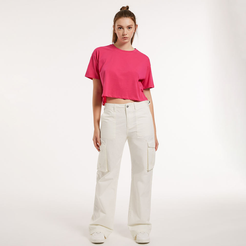 เสื้อครอปสตรีทไซส์ใหญ่พิเศษของผู้หญิงเสื้อครอปผ้าฝ้าย100% บ็อกซี่สีชมพูไหล่ตกสไตล์บูติกแฟชั่นเสื้อยืดออกแบบโลโก้ได้ตามต้องการ