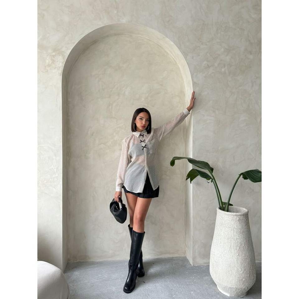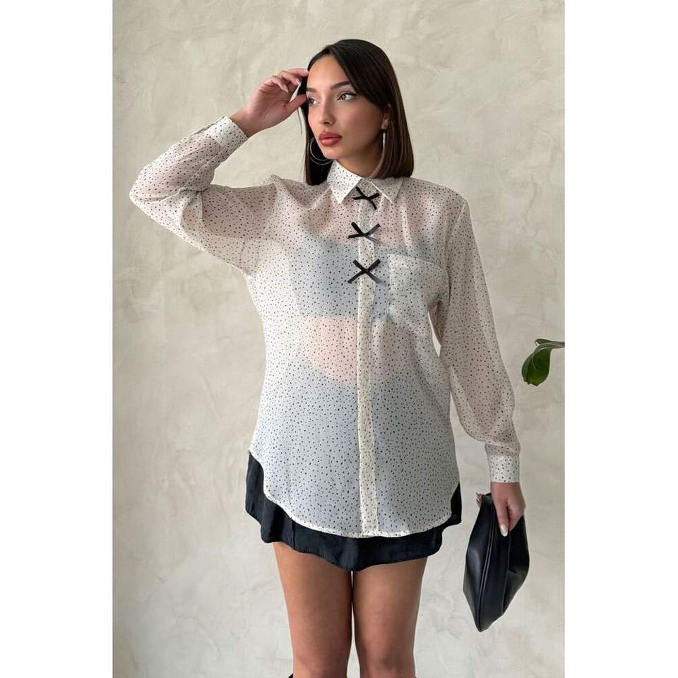เสื้อชีฟองลายจุดสำหรับผู้หญิงขายส่ง พร้อมดีเทลโบว์สุดหรู