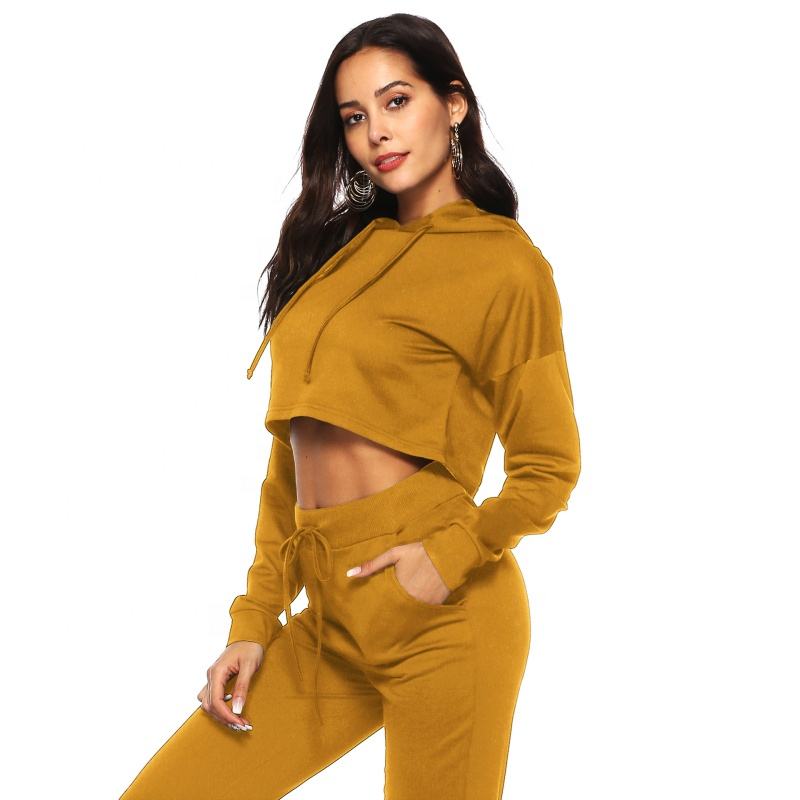 ชุดครอปมีฮู้ดพิมพ์ลายสำหรับผู้หญิงชุดออกกำลังกายฟิตเนส2ชิ้นชุดวอร์มกางเกงสำหรับผู้หญิง
