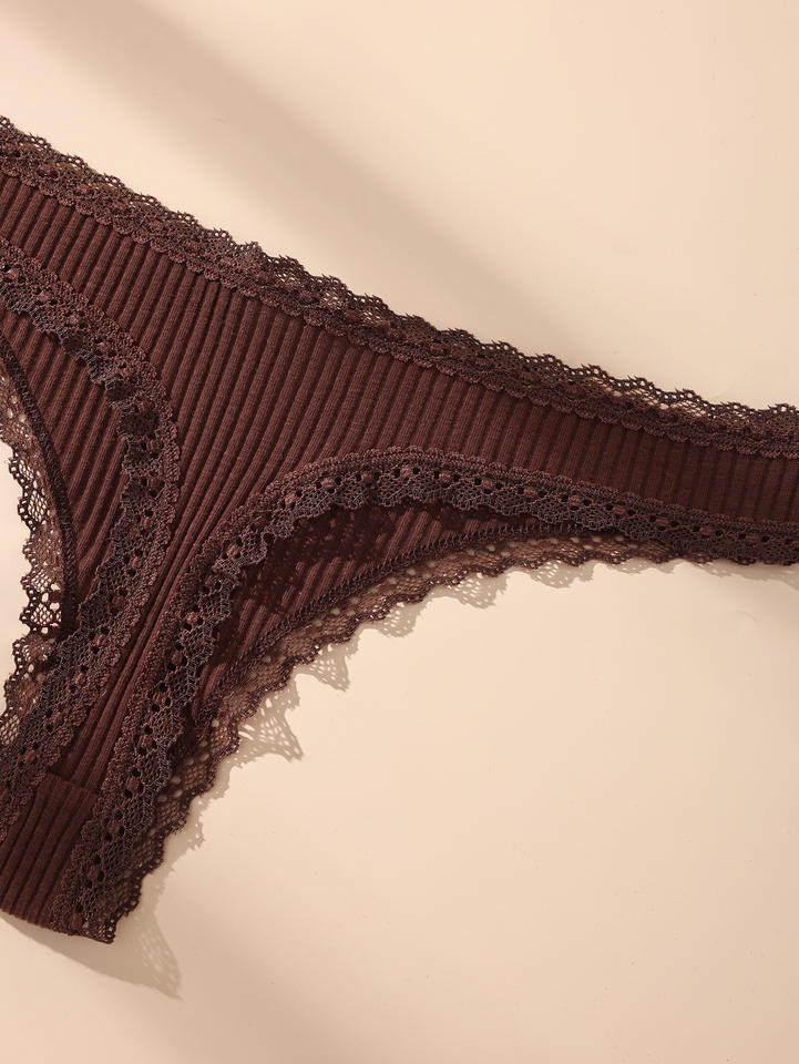 กางเกงในผู้หญิงแบบขายส่ง ผ้าคอตตอนริบบ์ ขอบลูกไม้ เอวต่ำ นุ่ม ระบายอากาศได้ดี ไซส์ใหญ่พิเศษ