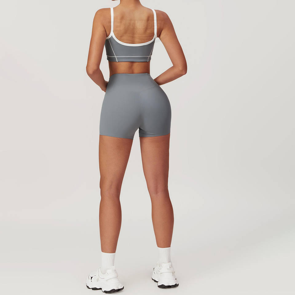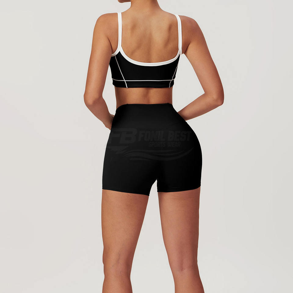 ชุดโยคะ 2 ชิ้น สีพื้นตัดกัน สำหรับผู้หญิง ไซส์ S-XL ขายส่ง เสื้อชั้นในกีฬาไร้ตะเข็บ กางเกงขาสั้นออกกำลังกาย ระบายอากาศได้ดี บริการ OEM
