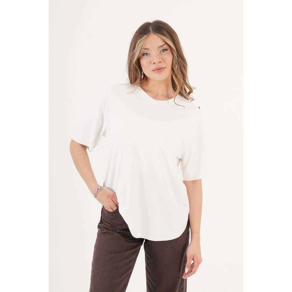 เสื้อยืดคอกลมไร้ตะเข็บสำหรับผู้หญิง ขายส่ง สีขาว
