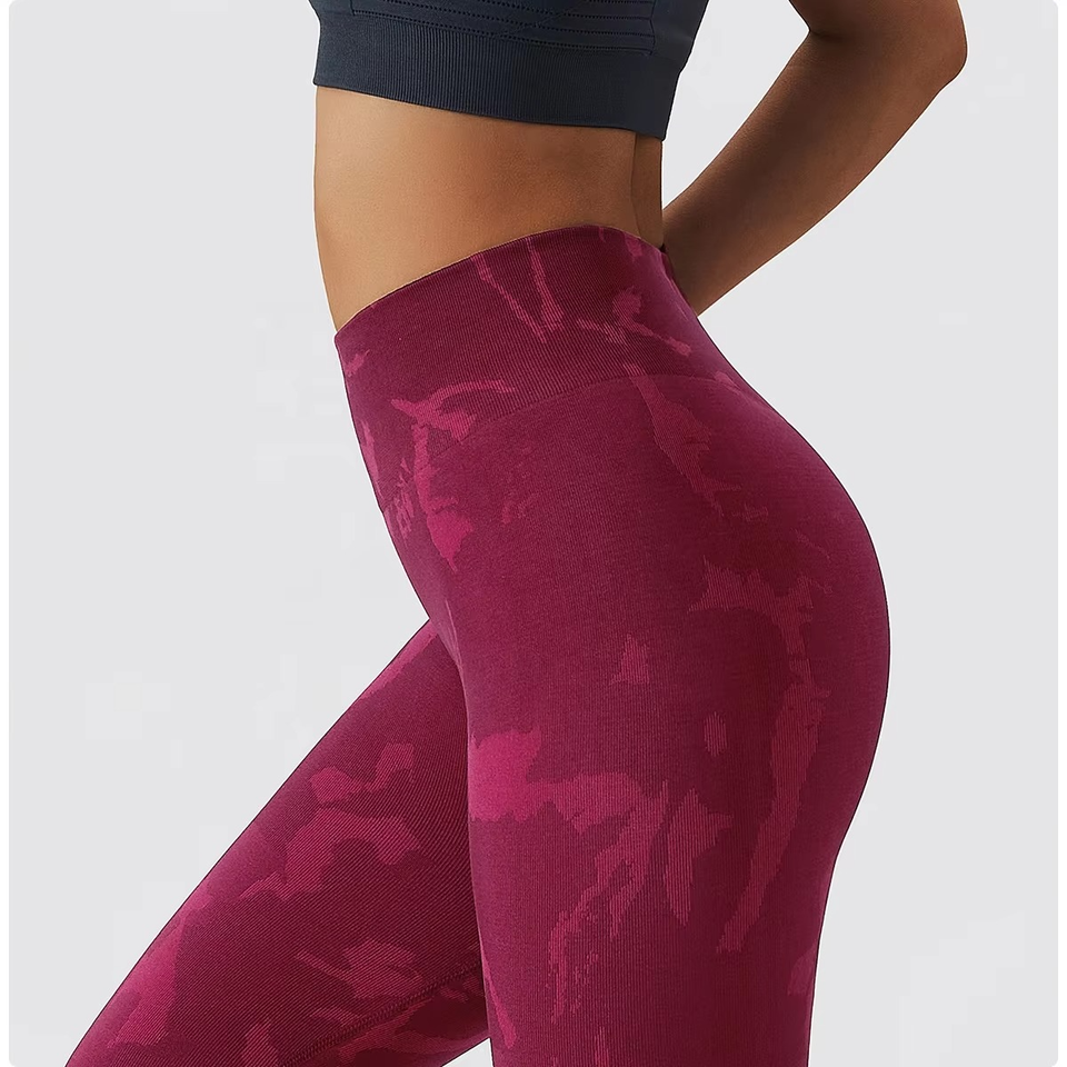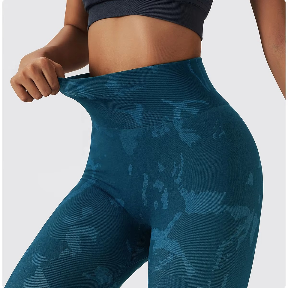 กางเกงโยคะฟิตเนสผู้หญิงแบบไร้ตะเข็บลายมัดย้อม เอวสูง ยกสะโพก กางเกงเลกกิ้งกีฬา มีเชือกผูก ระบายอากาศได้ดี ขายส่ง
