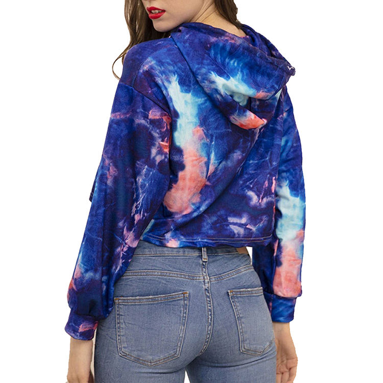 เสื้อฮู้ดครอปพิมพ์ลายไท-ไดสำหรับผู้หญิง ขายส่ง รับสกรีนลายแบบซับลิเมชั่น เสื้อฮู้ดครอปลำลอง สปอร์ตแวร์ เสื้อฮู้ดมีฮู้ดสำหรับผู้หญิง