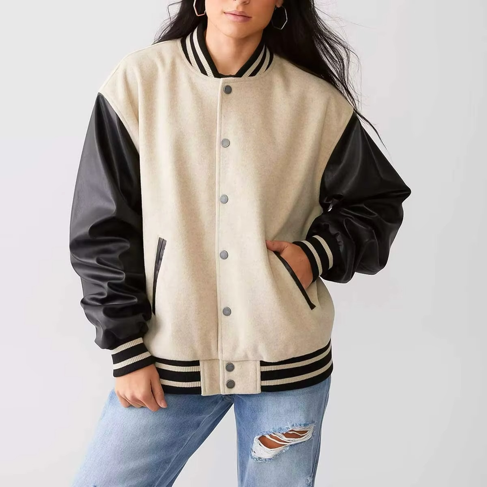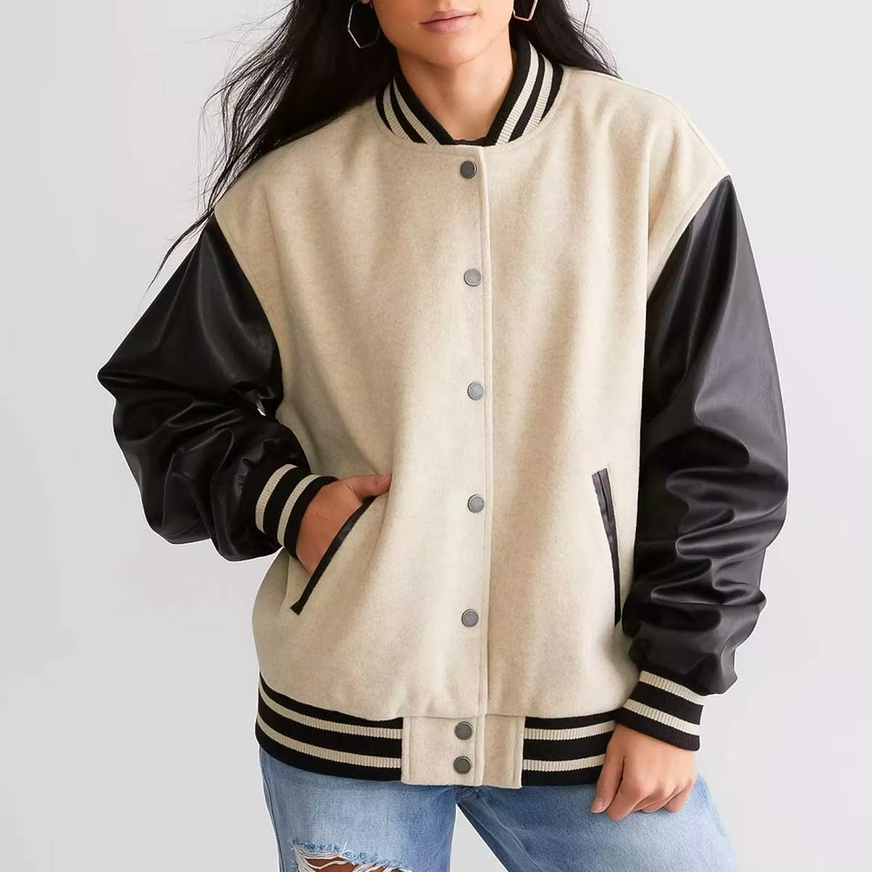 แจ็คเก็ตวาร์ซิตี้ผู้หญิงขายส่ง ราคาไม่แพง รับทำโลโก้ แจ็คเก็ตเบสบอล สไตล์มหาวิทยาลัย แฟชั่นสตรีท เสื้อคลุม