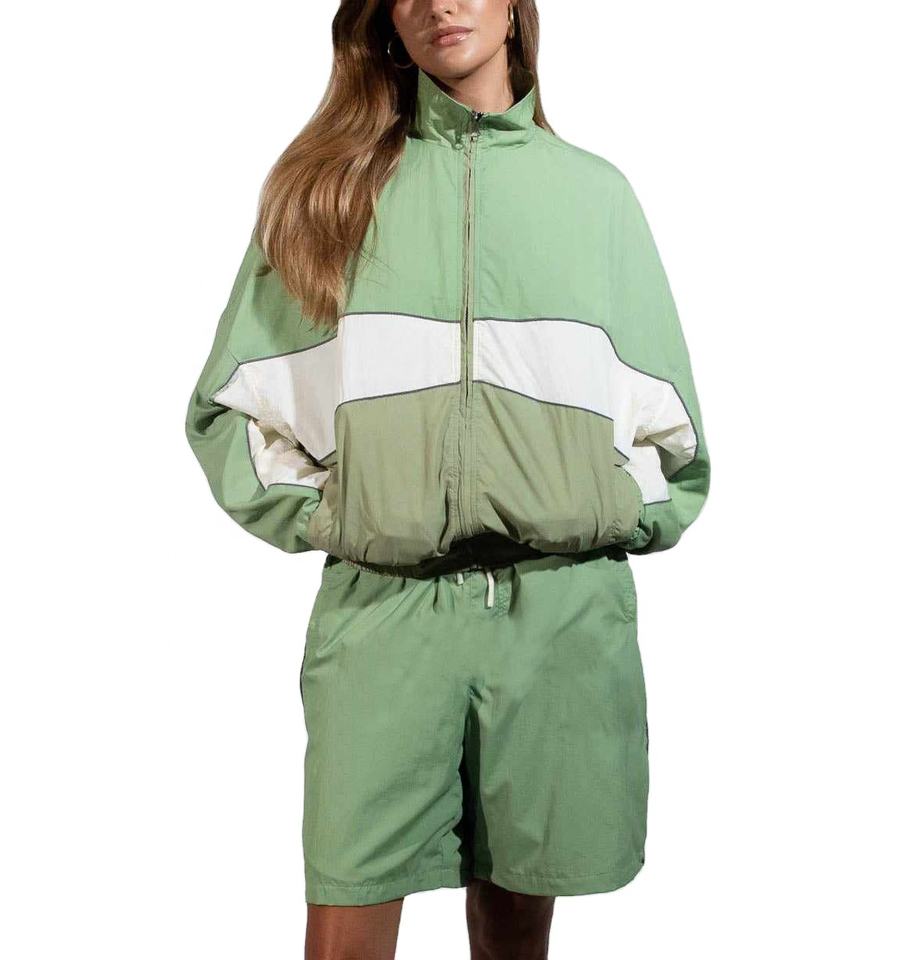 เสื้อแจ็คเก็ตกันลมสำหรับผู้หญิงเสื้อกันลมผ้าโพลีเอสเตอร์พิมพ์ลายตามสั่ง
