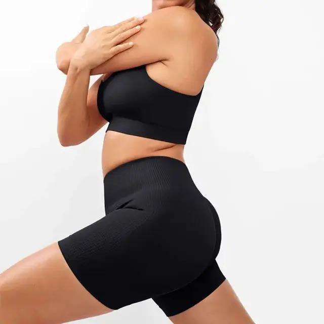 ชุดโยคะบราและกางเกงขาสั้นสำหรับผู้หญิง ขายส่ง ไซส์ใหญ่ เอวกลาง สายปรับได้ ผ้าแห้งเร็ว ชุด 2 ชิ้น ชุดผู้หญิง