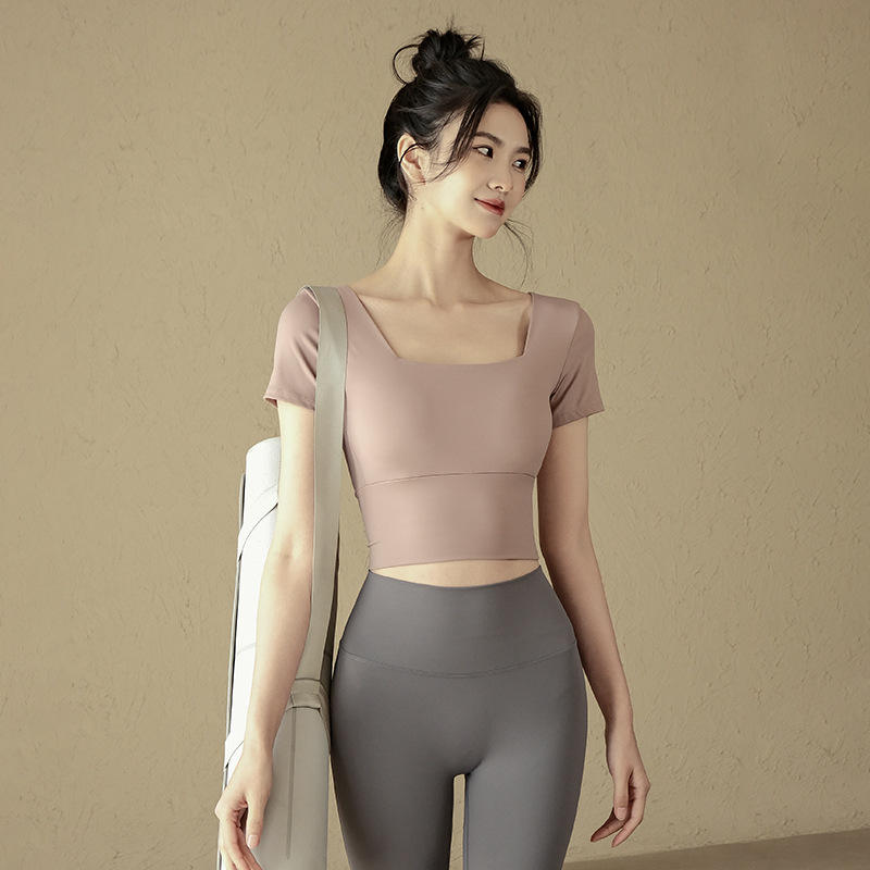 เสื้อโยคะผู้หญิงขายส่งพร้อมบราในตัว - ทรงเข้ารูป พรีเมียม แขนสั้น สำหรับพิลาทิสและฟิตเนส ปี 2025 ผู้ผลิตใหม่ ขายตรงจากโรงงาน รับผลิตแบบ OEM