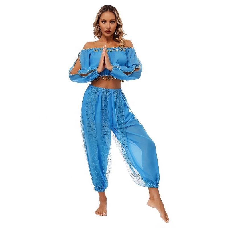 Wholesale Womens Elegant Purple Belly Dance Performance Wear Pants Outfit Set Halloween Professional Belly Dance Costume
