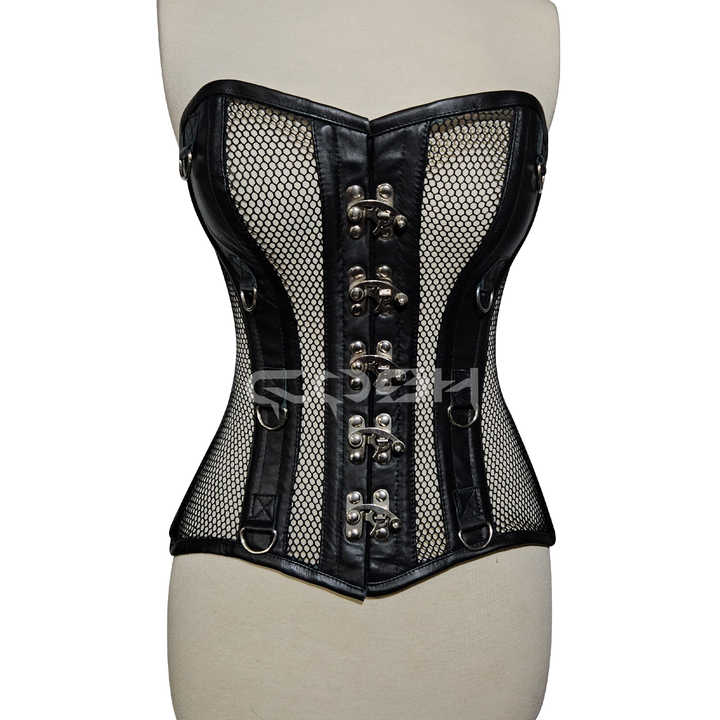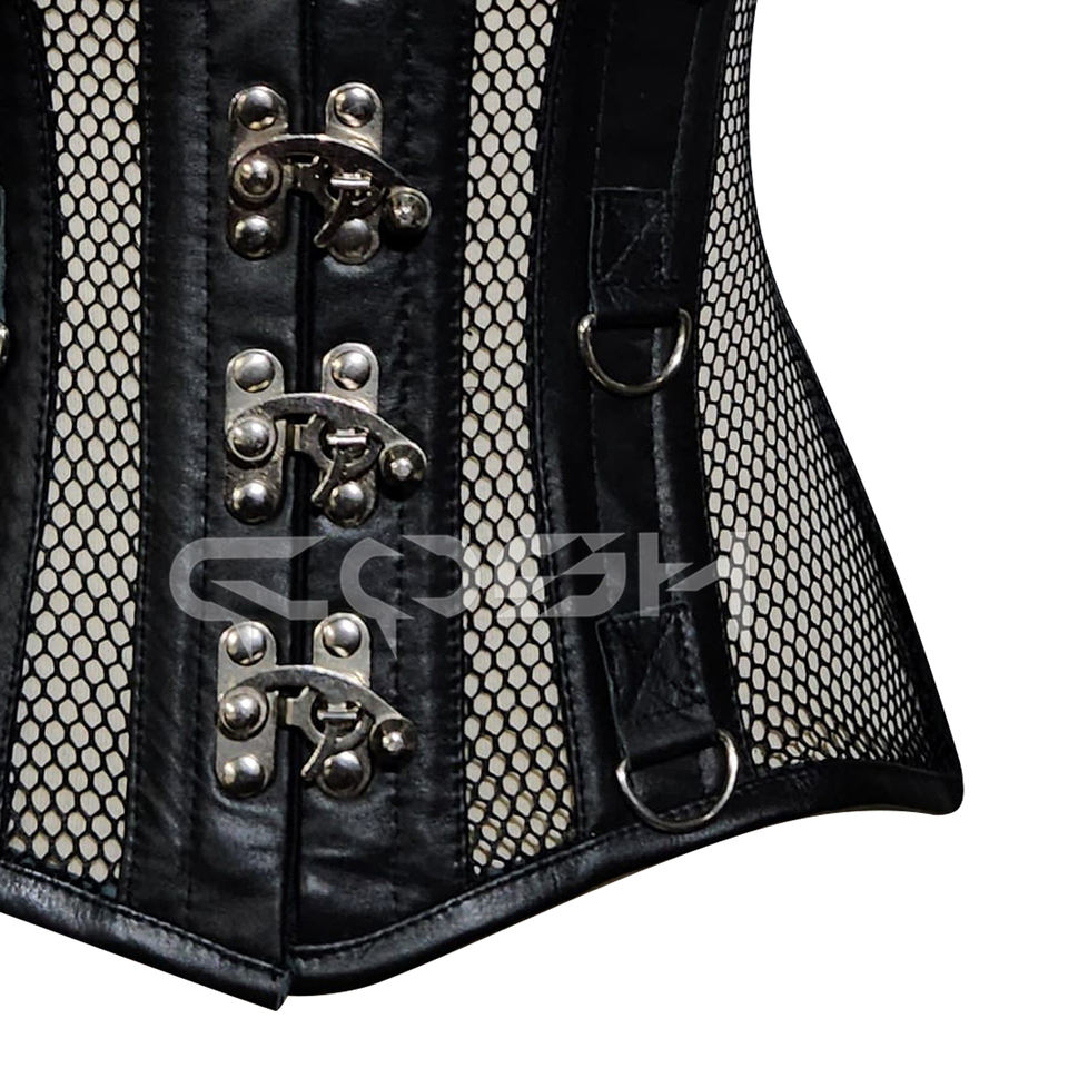 ชุดชั้นในคอร์เซ็ทตาข่ายสีดำเซ็กซี่สำหรับผู้หญิงขายส่ง พร้อมขอบหนังเทียมและตัวล็อคด้านหน้า | ซื้อเลย