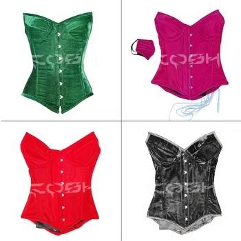 ชุดคอร์เซ็ทกำมะหยี่สีบานเย็นแบบผูกเชือกสำหรับผู้หญิง พร้อมชุดหน้ากากเข้าชุด ขายส่ง