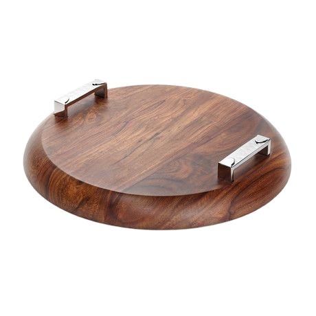 ถาดเสิร์ฟอาหารไม้อะคาเซียพร้อมที่จับถาดเสิร์ฟไม้ไผ่สำหรับตกแต่งชากาแฟงานตามสั่ง