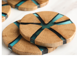 ชุดที่รองแก้วทำจากไม้และเรซินแบบกลมสำหรับใส่ชากาแฟทำจากเรซิน