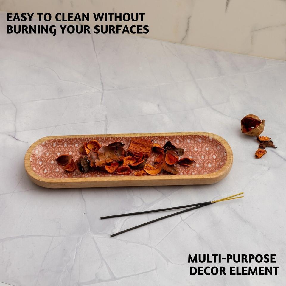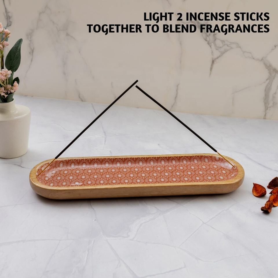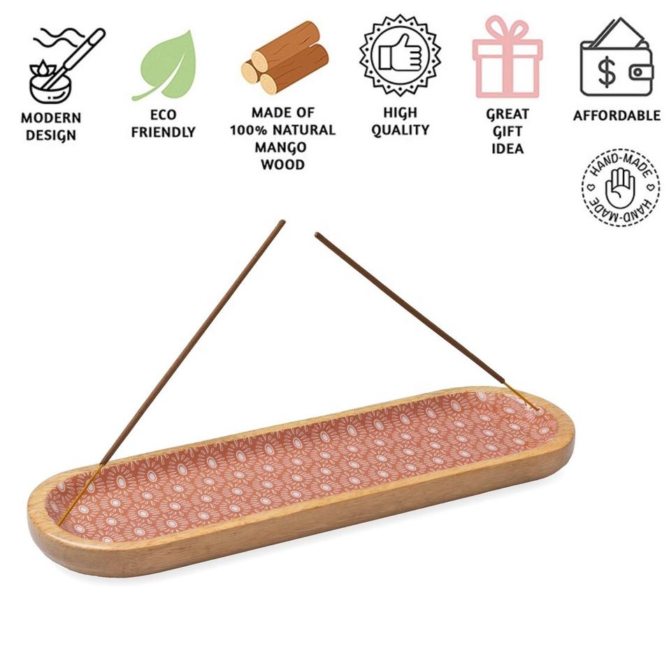 ที่ใส่ธูปไม้รูปทรงไข่พิมพ์ลายถาดดักขี้เถ้าทำด้วยมือสำหรับตกแต่งบ้านและใช้ในการทำสมาธิ