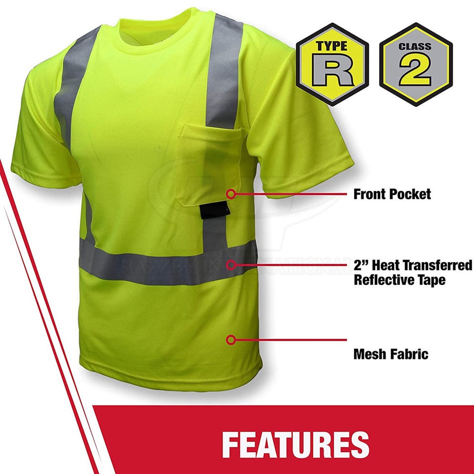 เสื้อยืดทำงานขายส่งสำหรับผู้ชาย เสื้อผ้าสะท้อนแสงโพลีเอสเตอร์ความปลอดภัยสูง สำหรับโรงงาน ก่อสร้าง ใช้งานกลางแจ้ง มาตรฐาน ANSI Class