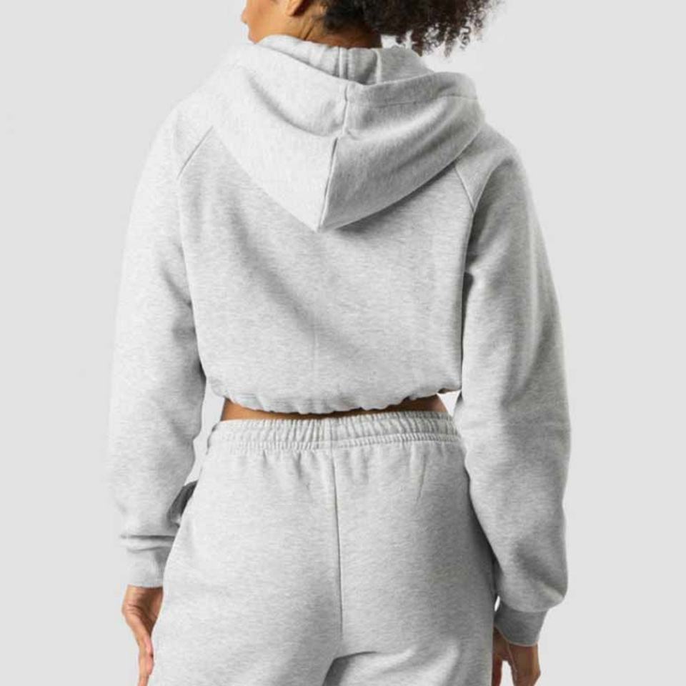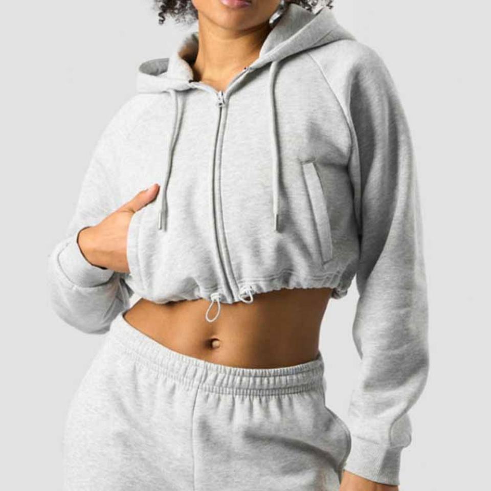เสื้อครอปฮู้ดดี้ออกกำลังกาย แขนยาว คอสูง ผ้าฝ้าย ทรงหลวม ปรับเอวได้ สำหรับผู้หญิง ขายส่ง